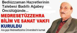 Medresetüzzehra Vakfı, din, beşeri ve fen bilimlerinin yanı sıra her türlü bilimsel faaliyetleri teşvik edecek, yapılmasını sağlayacak, ve her kademedeki öğrencilere, araştırmacılara destek sağlayacak inşallah" dedi. |